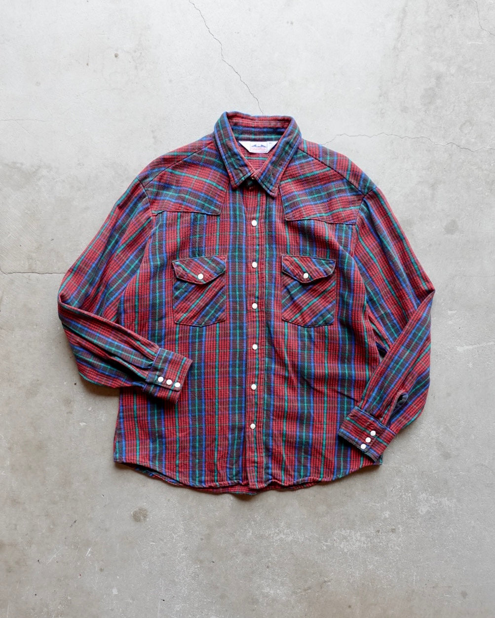 90年代のDAKOTA By FIVE BROTHERS製シャツ。FIVE BROTHERSはアメリカのワークウェアブランドで、そのセカンドラインであるDAKOTAは、カジュアルなアウトドアスタイルを提案するラインとして人気を博しました。