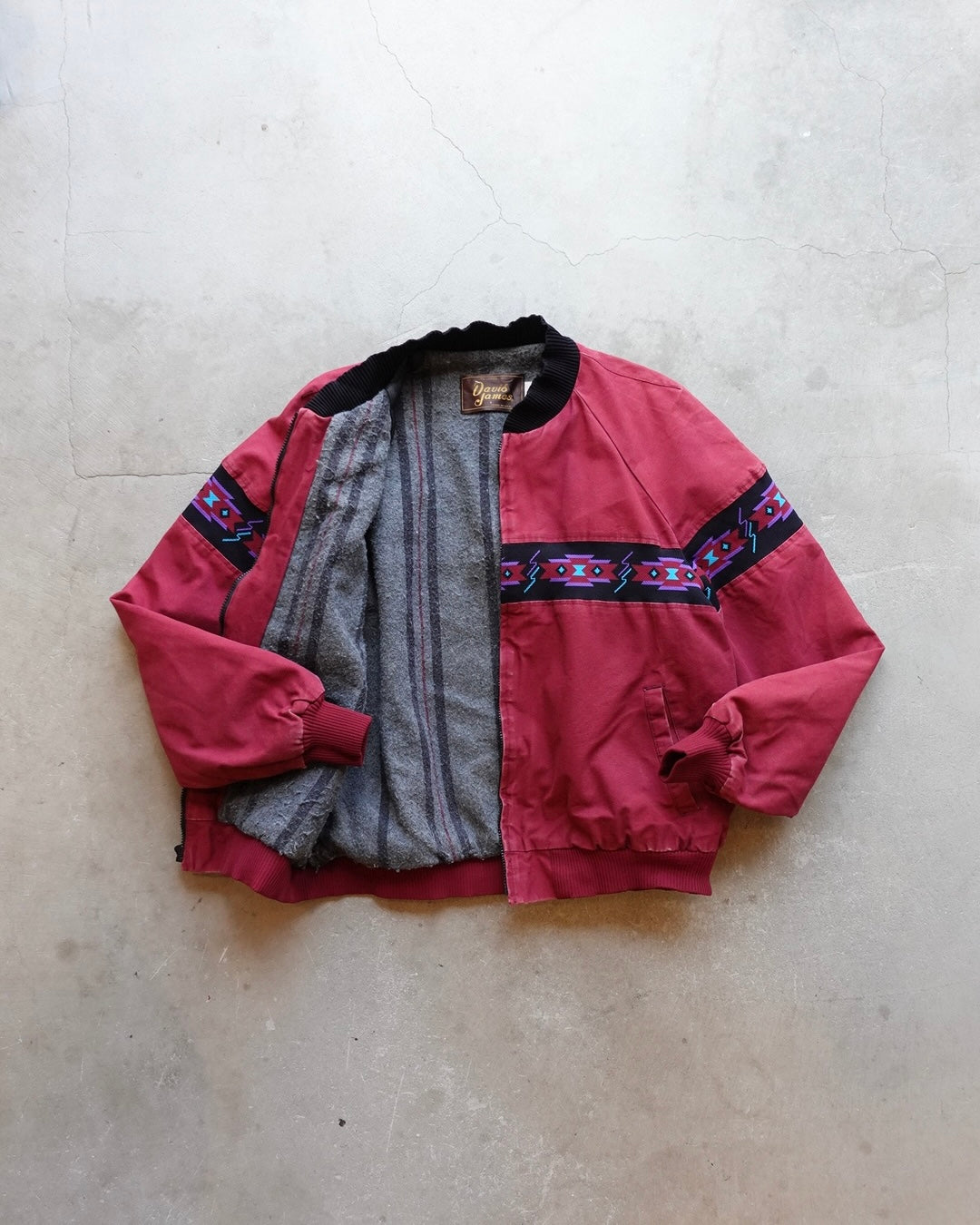 90年代のDAVIS JAMESによる、ネイティブパターンが印象的なジャケット。アメリカ製ならではの丁寧な縫製と、時代を感じさせるオーセンティックなデザインが魅力です。