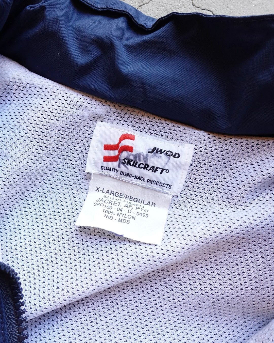 U.S. Air ForceのPTU(Physical Training Uniform)トラックジャケット。アメリカ空軍の官給フィットネスウェアとして支給された本物のミリタリーアイテム。ブルーのボディにシルバーラインが入る配色は空軍カラーリングそのもので、ミリタリーコレクターにとっても豊富な一枚。